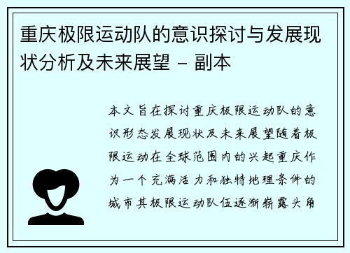 在近年来极限运动日益受到关注的背景下,西安滑板队在最新的极限运动会积分榜中,以78分稳居第一名,引发了广泛的讨论和热议。作为一支年轻而充满活力的团队,西安滑板队不仅展现出了卓越的竞技水平,更是将滑板文化推广到了更广泛的层面。本文将从四个方面深入探讨西安滑板队崛起背后的原因,包括其训练体系、团队合作精神、赛事表现以及对当地滑板文化的推动作用。通过这些分析,我们可以更全面地理解这支队伍背后的故事,以及...