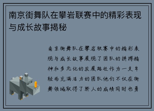 深圳攀岩队在全国团队协作排行榜上荣登第九名,这一佳绩不仅展现了队伍强大的实力,也体现了团结精神的重要性。在攀岩这项集体运动中,团队的协作能力是决定成败的关键因素之一。通过分析深圳攀岩队的成功之路,可以看到他们在训练、策略、心态和文化等四个方面所做出的努力与付出。本文将从这四个方面详细探讨深圳攀岩队如何在激烈的竞争中脱颖而出,并展示其卓越的团队精神与合作能力。 1、系统化训练提升实力 深圳攀岩队重...